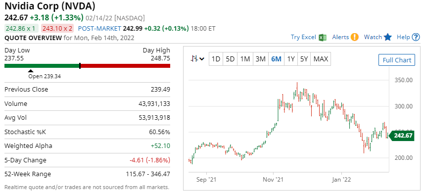 Trade thinking that NVDA might move higher after earnings could just trade the bull put spread side of the iron condor. Trading just the bull put spread side would involve selling the Feb 18th 220 call and buying the 215 call. This spread could be sold earlier today for around $1.00 or $100 in total premium. The maximum gain is $100 with total risk of $400 for a potential return of 25% with a breakeven price of 219.