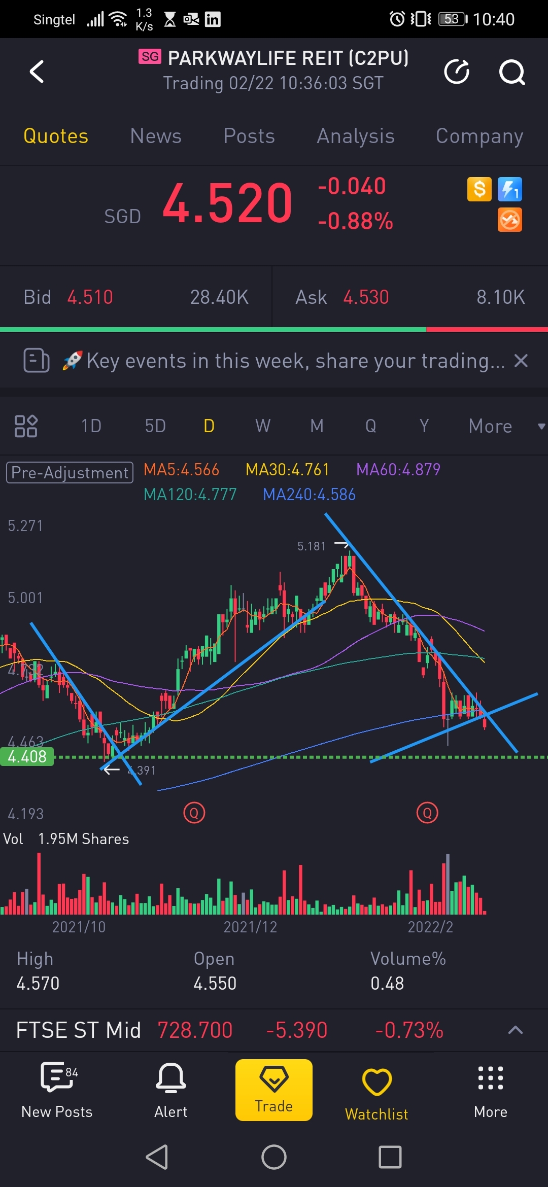 $PARKWAYLIFE REIT(C2PU.SI)$Testing support again! Buy the dip!