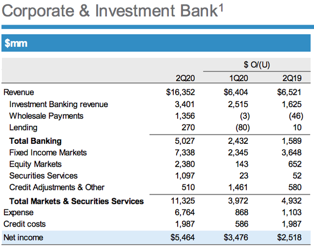 財報還顯示,二季度公司與投資銀行(CIB)淨利潤55億美元,同比大漲85%;營收164億美元,增長66%,創歷史新高,該項鉅額營收足以抵消大量非利息支出和準備金的增加。