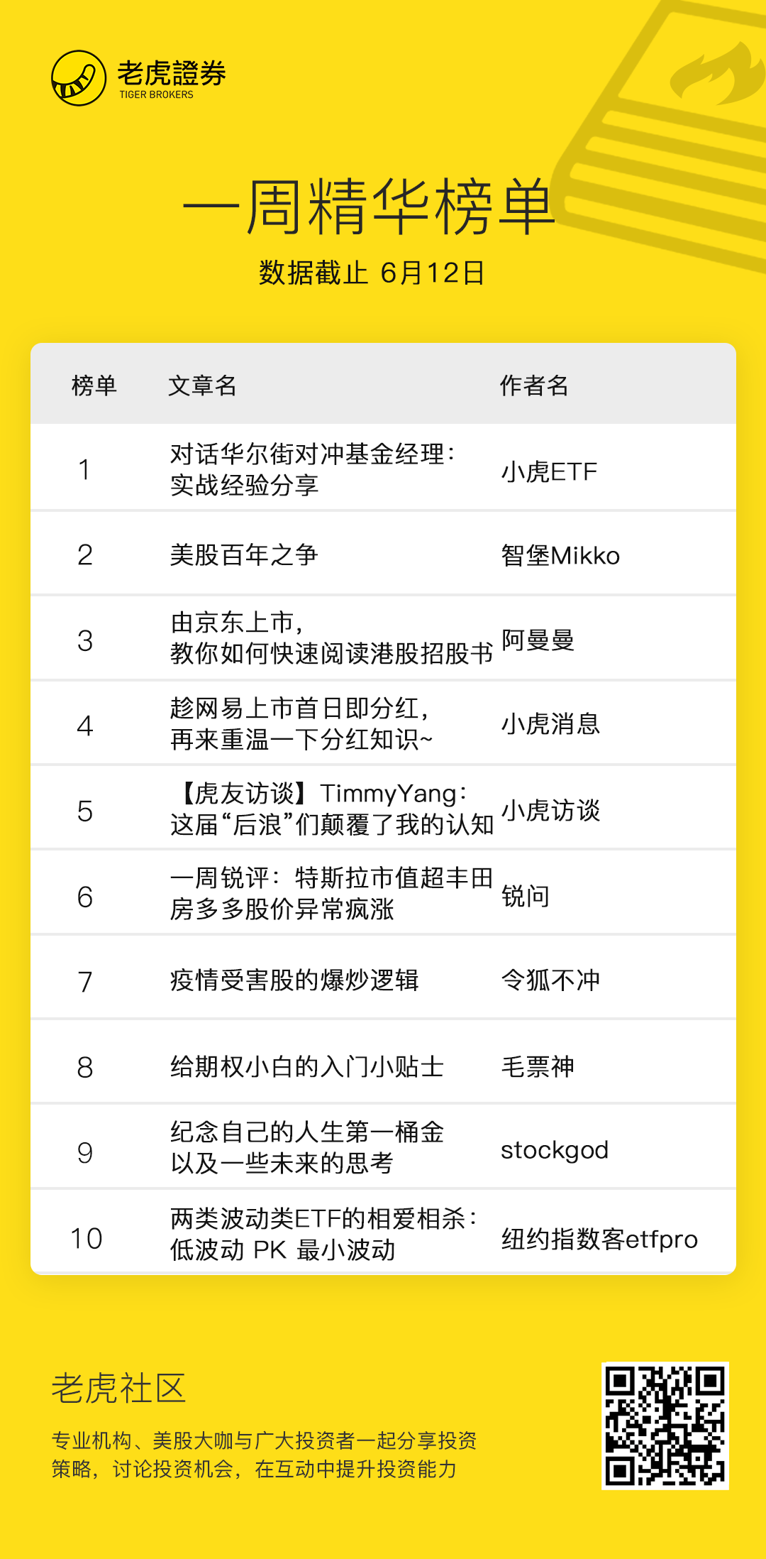 “老虎週刊”精選老虎社區虎友們一週精華寫作,希望成爲您投資路上的好夥伴。