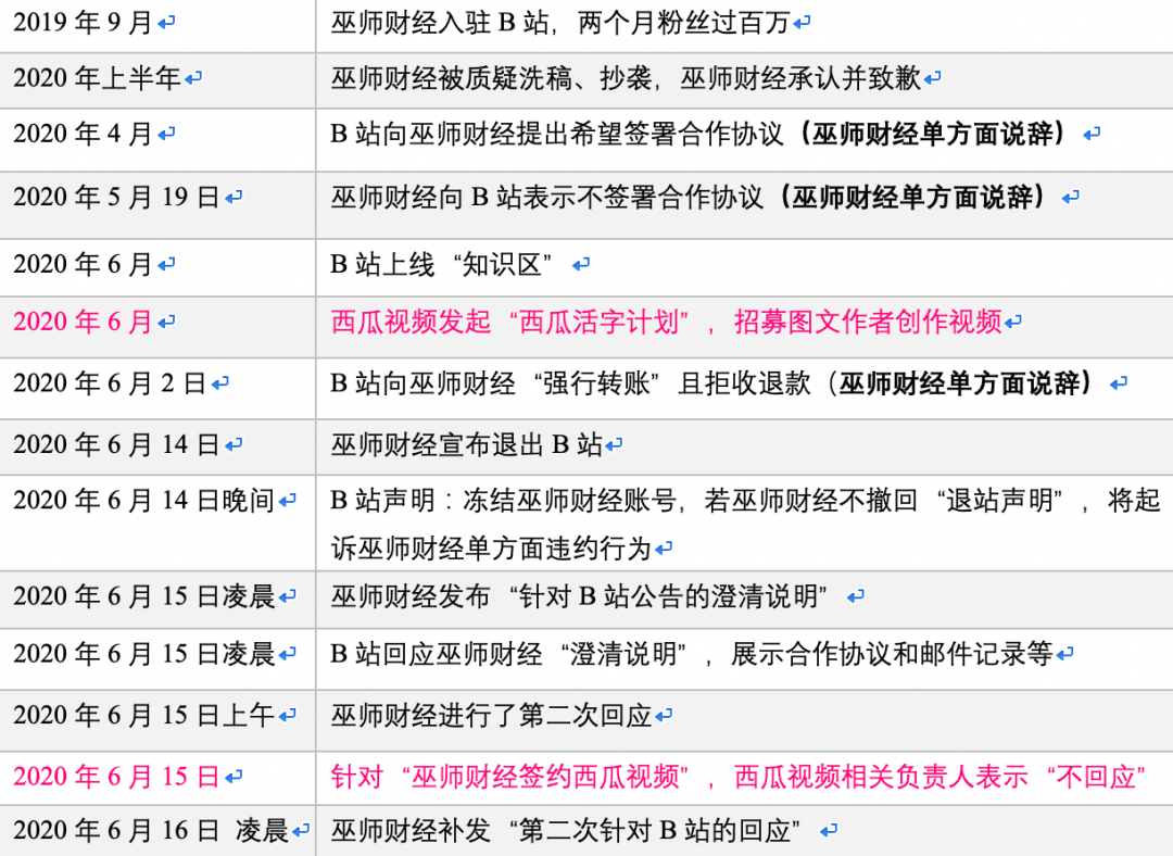 6月14日,知名UP主“巫師財經”宣佈自己將退出B站。巫師財經透露,近期在B站“用愛發電”所做的視頻效果反饋不及預期,自己在思考靠熱情做入門科普的模式是否可持續。B站方面展示了包括郵件、合同在內的一系列“證據”,直指巫師財經違反協議規定。