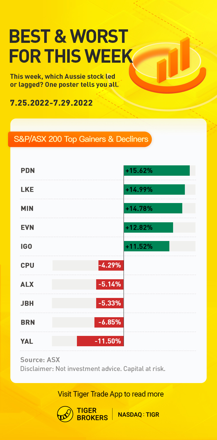 During the last 5 trading days, we can see $PALADIN ENERGY LTD(PDN.AU)$ , $Lake Resources NL(LKE.AU)$ , $MINERAL RESOURCES LTD(MIN.AU)$ , $Evolution Mining(EVN.AU)$ ,$IGO Ltd(IGO.AU)$ are the top 5 Weekly Ganers with 15.62%, 14.99%%, 14.78%, 12.82%, 11.52% increases respectively.