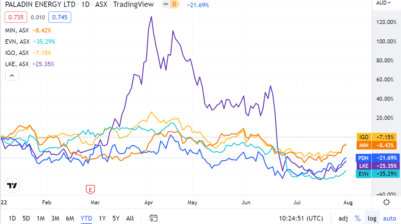 $PALADIN ENERGY LTD(PDN.AU)$ YTD in 2022 is -21.69%, but see 11.35% increase in July.