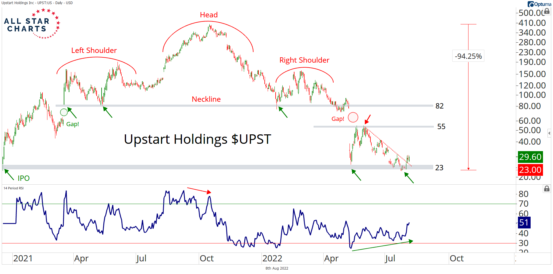 $Upstart Holdings, Inc.(UPST)$ shares close to their 52-week low. It is finding support at its IPO price after falling over 94% in the last ten months.