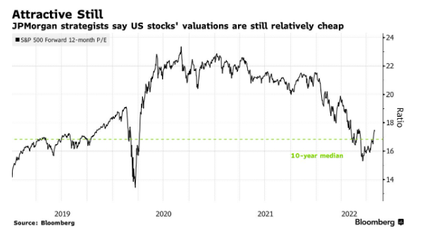 “While the economic outlook remains challenging, we believe the risk-reward for equities looks increasingly attractive as the second half of the year unfolds. For now, bad data has been read as good, with Fed hawkish peaking, earnings Calls for a peak in rates and inflation are emerging.”