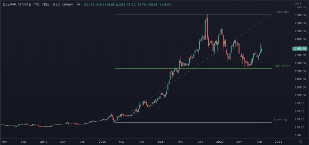 We have been “spot on” in discussing the ongoing correction for the last two weeks, and it seems to be turning out well. As the correction has begun, I certainly prefer to take up shorts from a short to mid-term perspective. But this is the perfect time to focus on those counters which are trending in nature to make good long-term bets. One such counter is Deepak Nitrite. Let’s see all the observations I have spotted on the same.