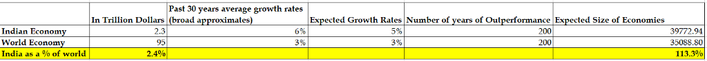 Forget about infinity even if India grows at a 2% higher rate than the world economy in 200 yrs India will be more than 100% of the world economy. Sounds laughable right? So are the valuation outputs of the financial models that take the perpetual growth rate to be 5% or 6% in their assumptions.