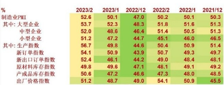 從已公佈的2月份數據可知製造業採購經理指數、非製造業商務活動指數和綜合PMI產出指數分別為52.6%、56.3%和56.4%,遠超50%,高於臨界點,這些指數都表明PMI指數在持續釋放積極的信號。