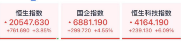 港股方面更加瘋狂,恆生指數漲4%、恆生科技漲6%!