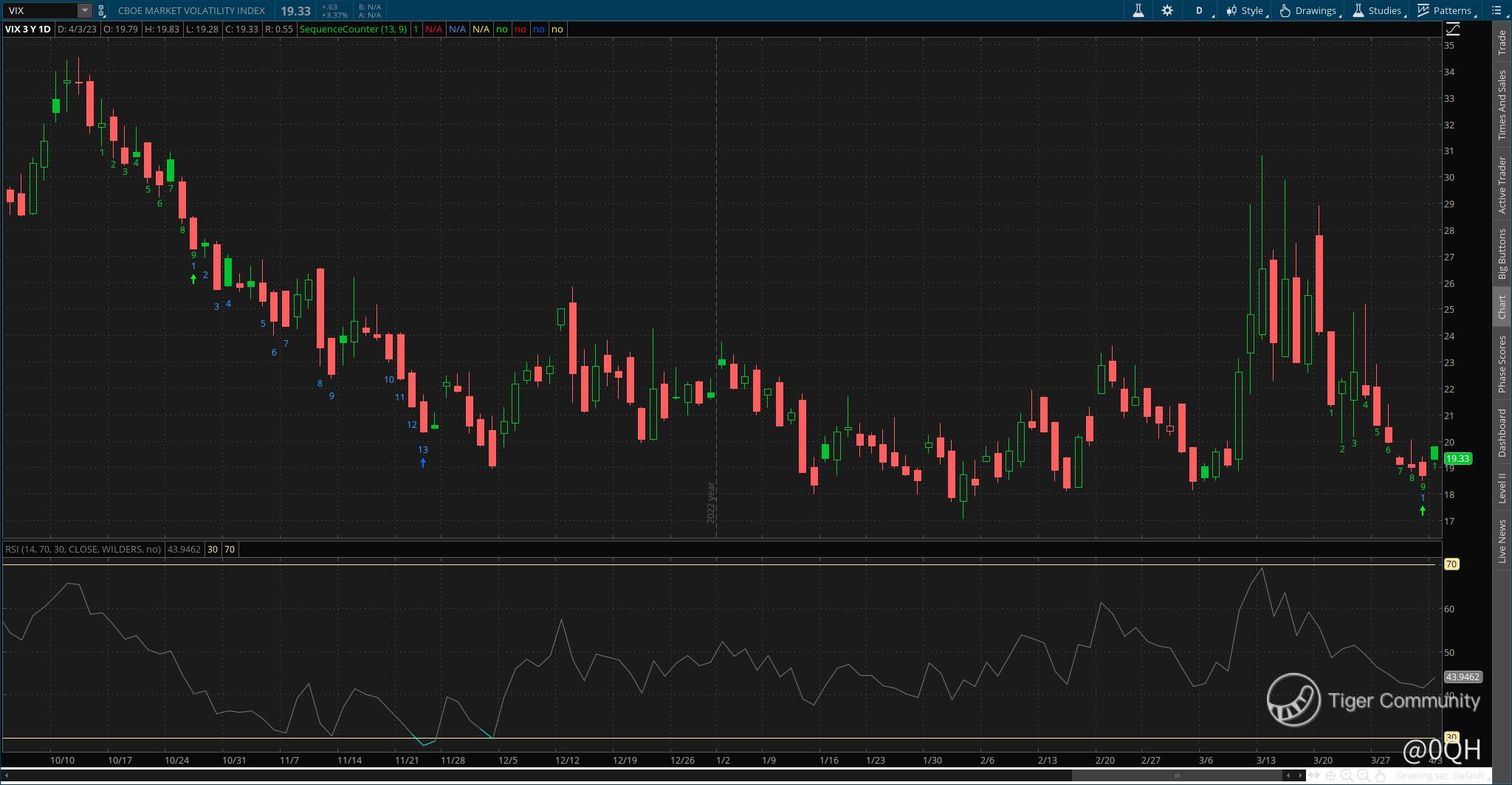 On March 31, 2023, the VIX formed a perfect buy (Green Arrow pointing upwards) signal based on Tom Demark's TD9 indicator. This could indicate a bullish reversal in the VIX, making it a good time to trade the VIX. Additionally, the upcoming Federal Reserve meeting on May 2-3, 2023, could lead to further market volatility. Today we will explore how to trade the VIX using ETFs and explain the Tom Demark perfect buy signal.