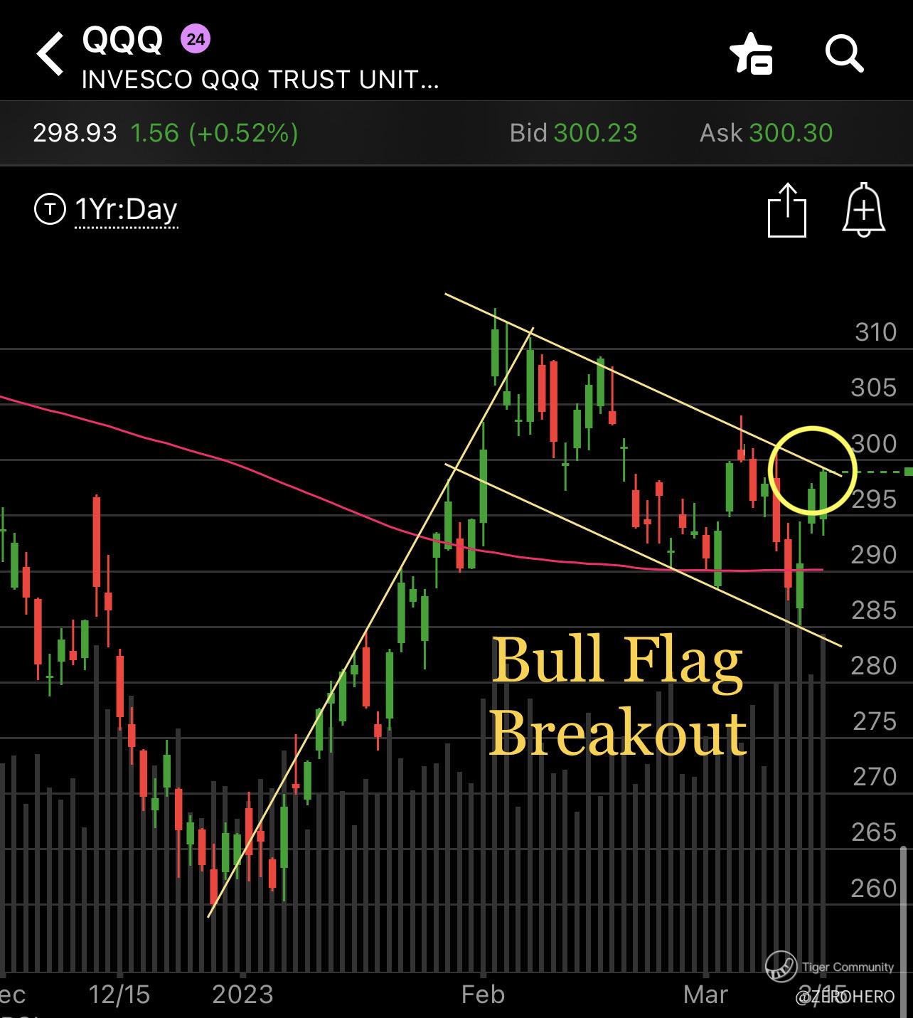 ⚠️ Trading Tips: Since hot money are flowing back into tech sector after the financial turmoil from bank stocks, choosing QQQ over S&P could be a better bet for now. Looking at calls above 300.98 and puts under 298.44. Double top at 304 and retest level at 296. Get ready to pump up the volume 😉