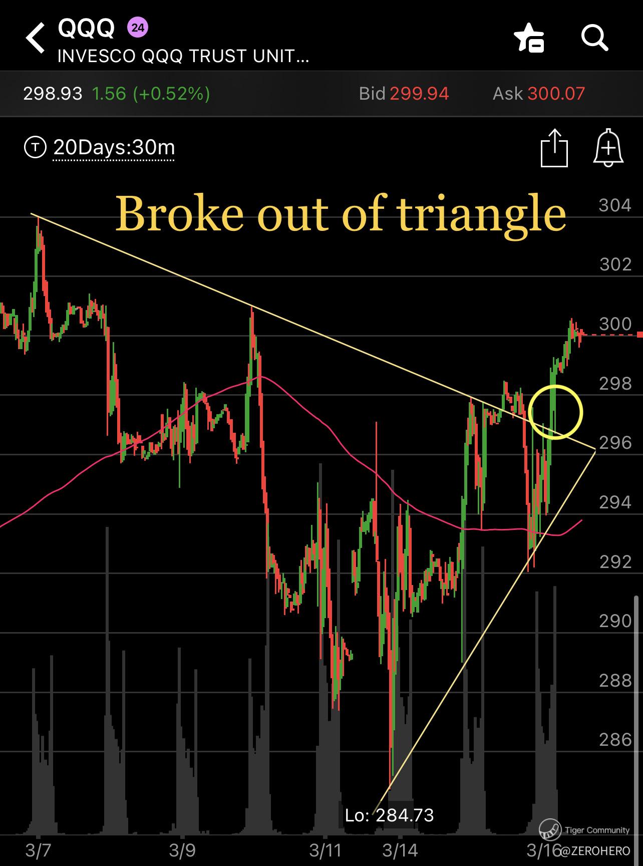 Lately the financial sectors are performing badly. Money are transferred into other sectors pumping up volume to move charts this week. QQQ could lead the charge as an exchange-traded fund that tracks the Nasdaq-100 Index™ and features Apple, Google, Microsoft, and more. A tech heavy ETF with more than 50% holding.