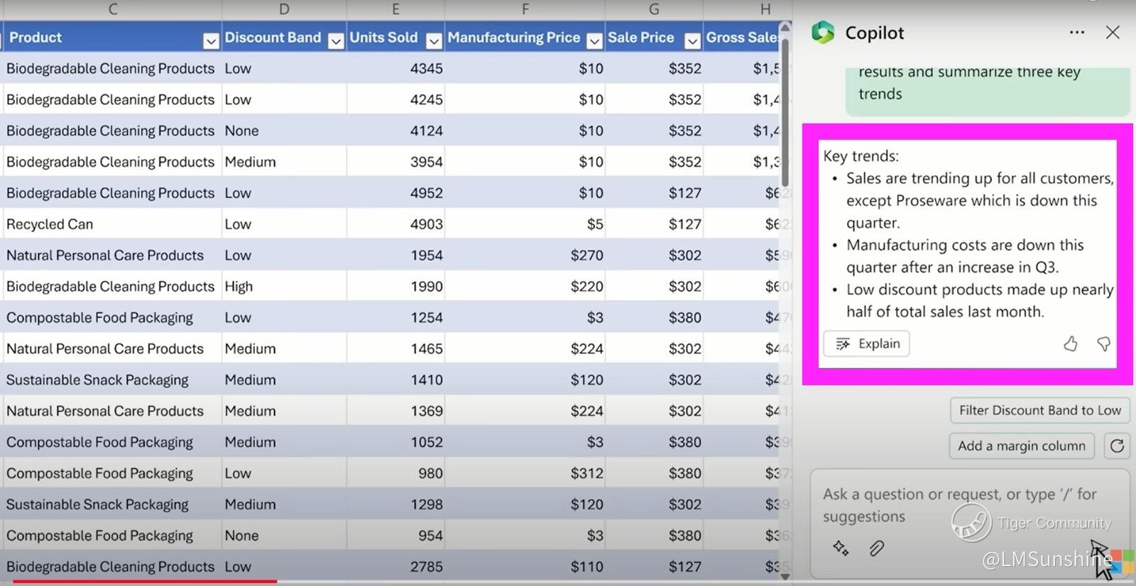 ⭐️ Copilot in Excel helps unlock insights, identify trends or create professional-looking data visualisations in a fraction of the ⏰