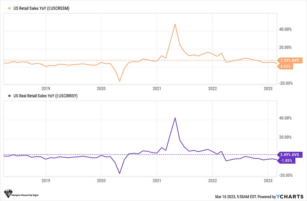 The next set of important economic data was retail sales. While the nominal retail sales were positive and in line with estimates, the trend in real retail sales (adjusted for inflation) remains negative for more than 12 consecutive months now.