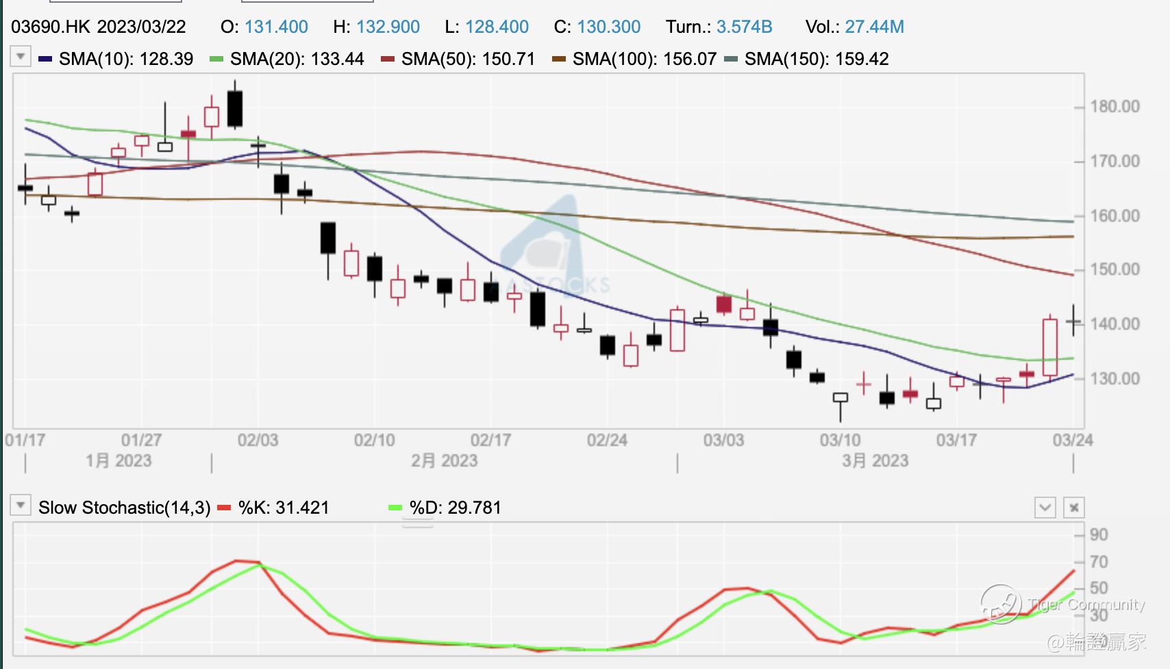 指數難玩唯有向個股埋手。今日 $Meituan(03690)$ 將會公佈業績,噚日都無預計到佢出支咁大支嘅陽燭向上打穿埋條中軸,不過日線圖見佢暫時喺高位出咗「十字星」,如果咁樣嚟收市的話,技術走勢先係no good;一旦業績遜預期,更加對股價no good。