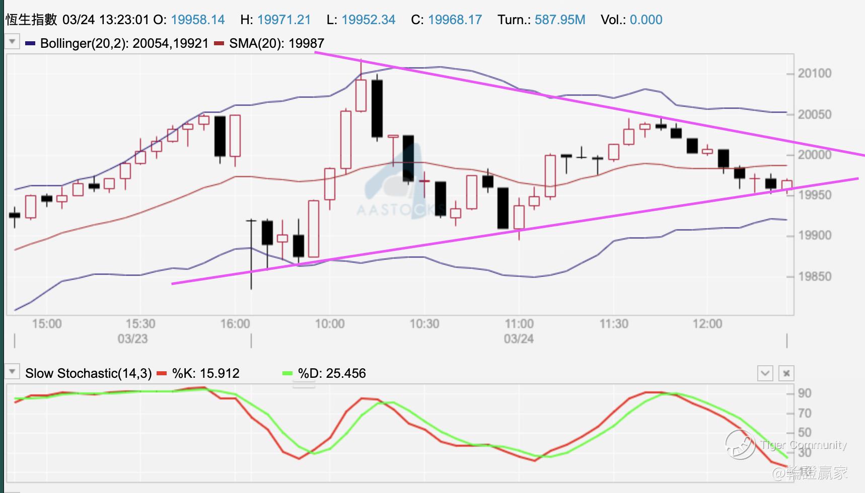 咁又無乜嘢嘅,事關睇返五分鐘圖 $HSI(HSI)$ 今日走勢都算飄,但飄嘅幅闊度如果做做Swing 嘅話都唔係容易,皆因喺五分鐘圖上已經可以畫到一個「三角形」出嚟,一個唔覺意出手慢、唔夠快、無速度,隨時左一巴右一巴被阿市摑落嚟。