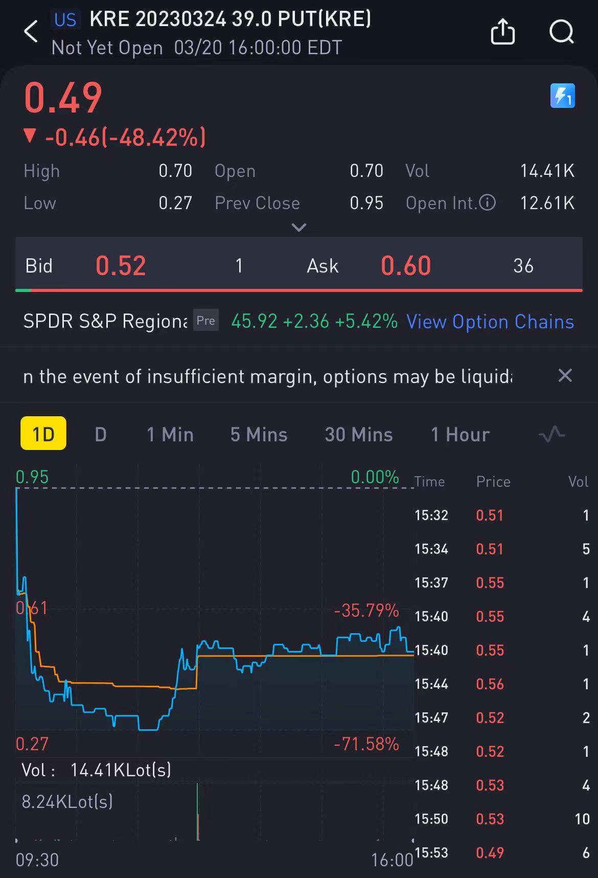 Those who have been trading US stocks for several years should remember that there have been several ETF breakdown events under extreme market conditions, such as crude oil ETF and VIX ETF. While this is common with leveraged ETFs, it is hard to say whether a breakdown of a certain magnitude would pose a liquidation risk for KRE.