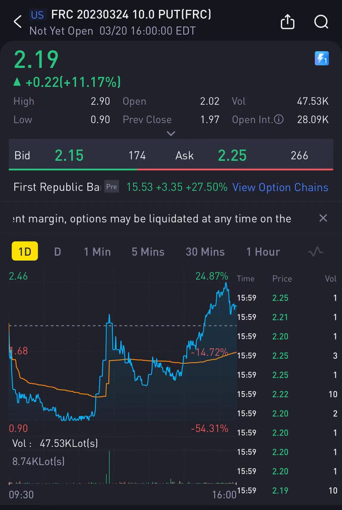 There was a big order yesterday of $First Republic Bank(FRC)$ put options expiring this week with a strike price of 10: