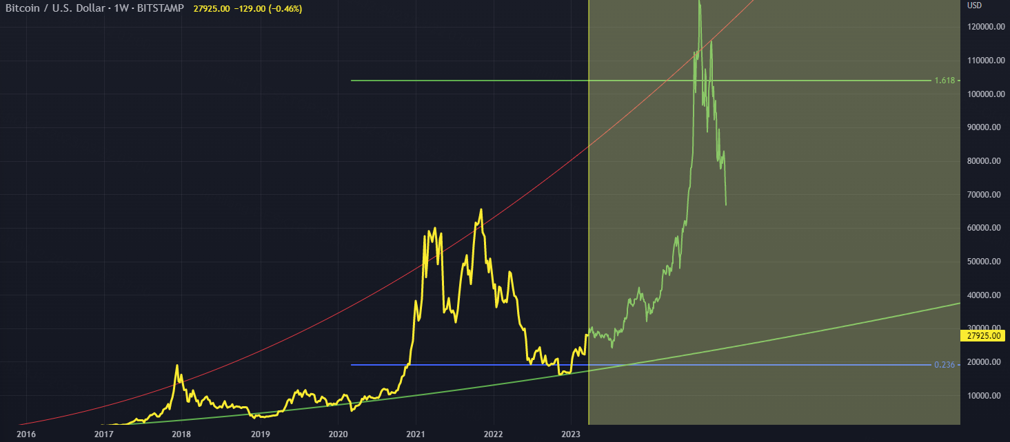 An idea for BTC showing the parabolic trend on a non-log chart