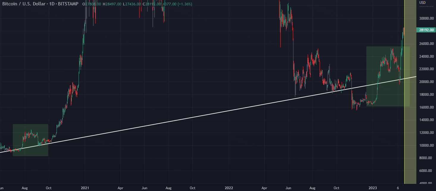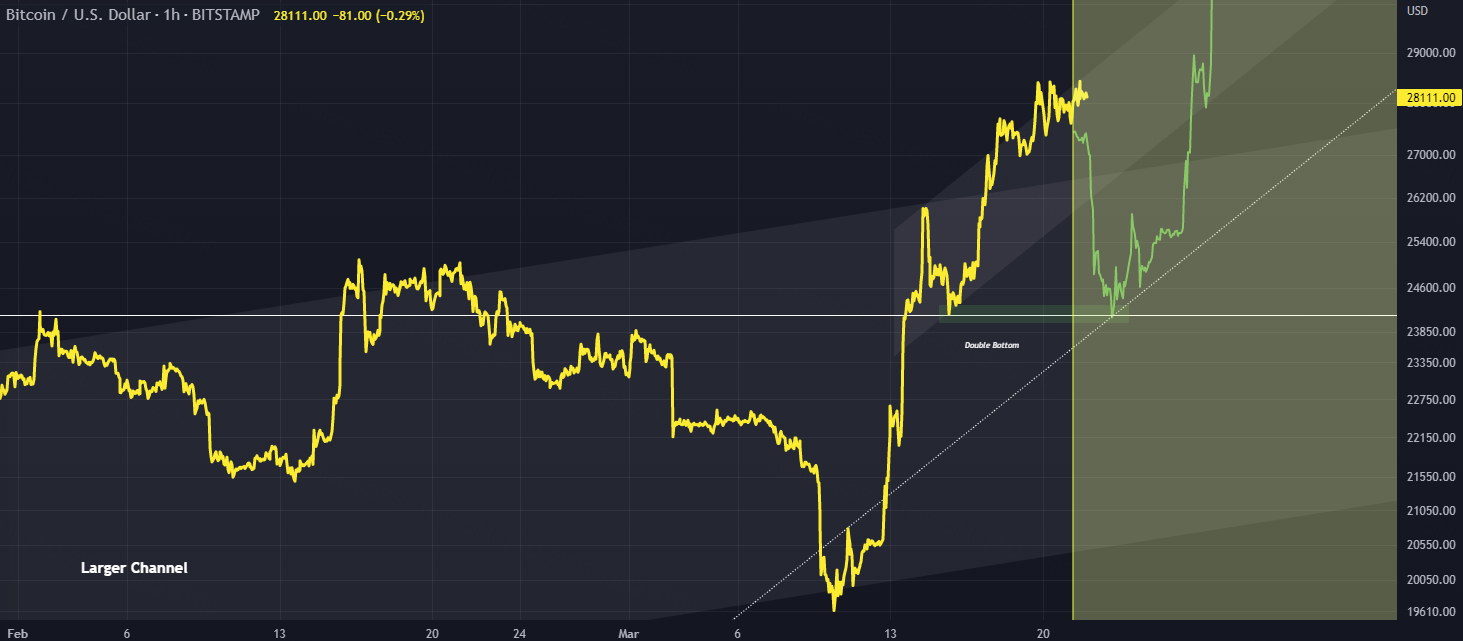 BTCUSD has formed a largeup channelthat is trying to be broken