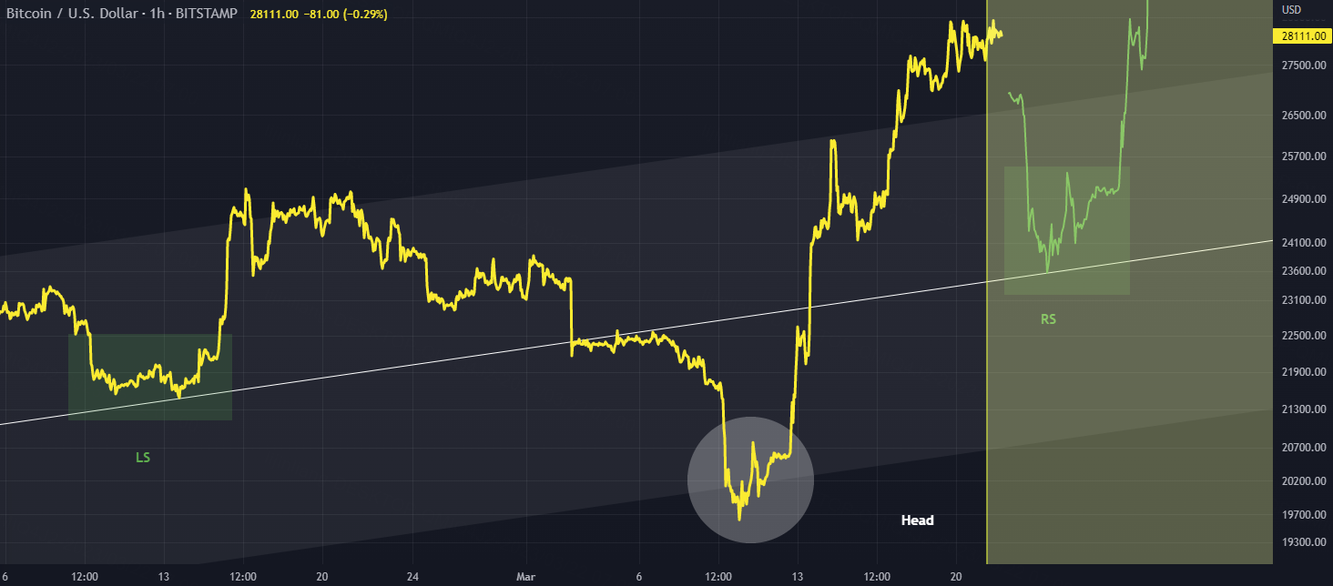 You can see the larger formation being created resembles an inverted H&S pattern if you plot a downward move to the middle of the channel