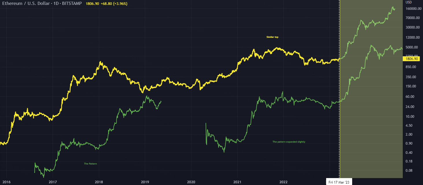 Similar structures are drawn between early 2016 ETH top and current 2022 top