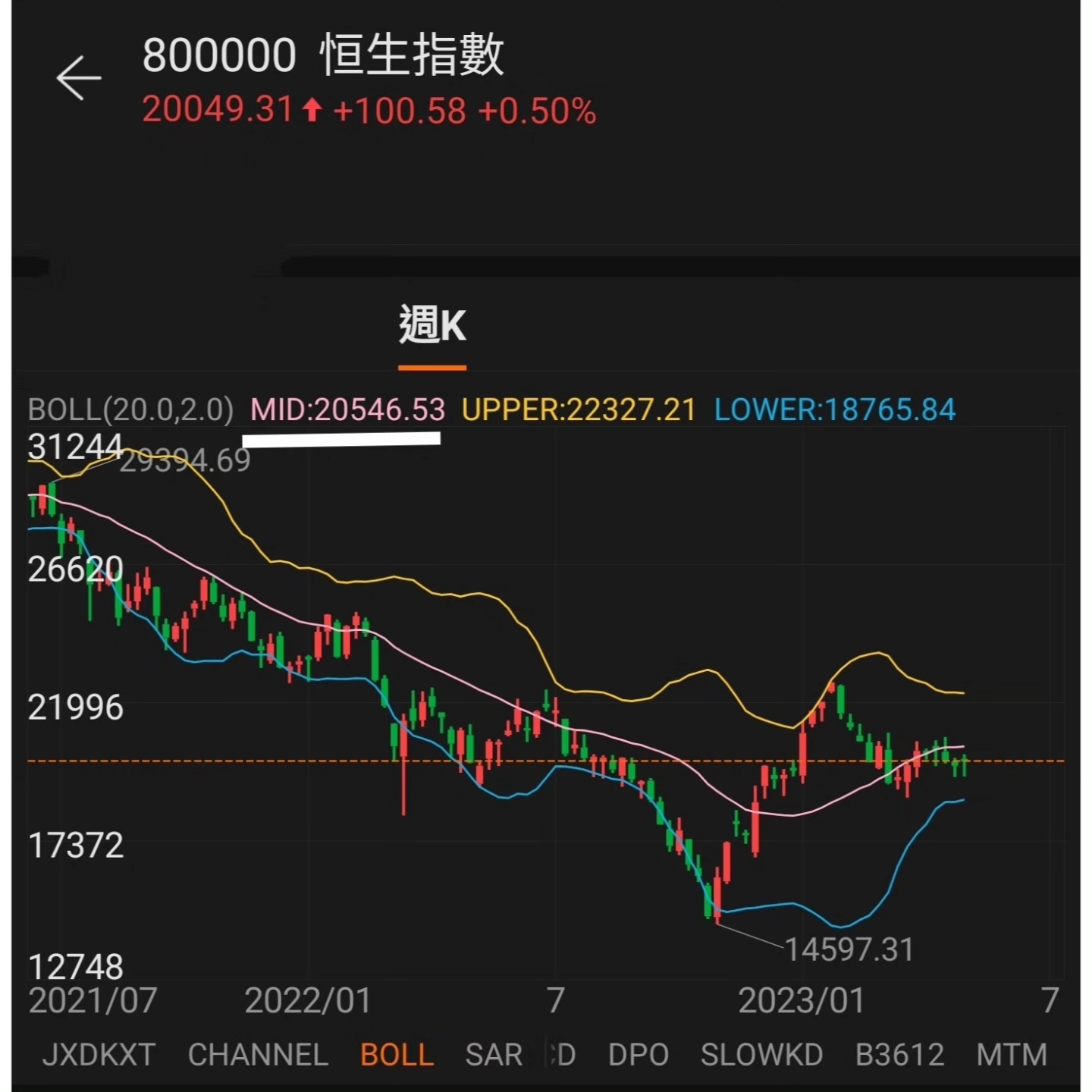4)恆生指數上方阻力為60天移動平均日線約20200點,再上方阻力位為布林線週線中軸20546點。