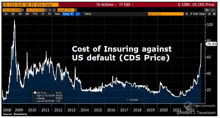 The debt ceiling discussion is reflected in the interest rate curve. Debts maturing before the debt ceiling is reached have lower interest rates than those after. The likelihood of a U.S. government default is small, but it could delay interest payments and repayments. It is likely that the U.S. government will give priority to paying interest on the debt over paying social benefits, for example. Indeed, the moment payments on government bonds are not made or are made late, it could put companies or financial institutions at risk. Especially with the rampant banking crisis an unattractive picture.