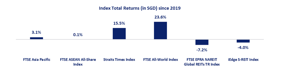 While Asia Pacific has lagged the global stock market over the past four months, the S-REIT Sector as gauged by the iEdge S-REIT Index marginally outpaced global REITs.