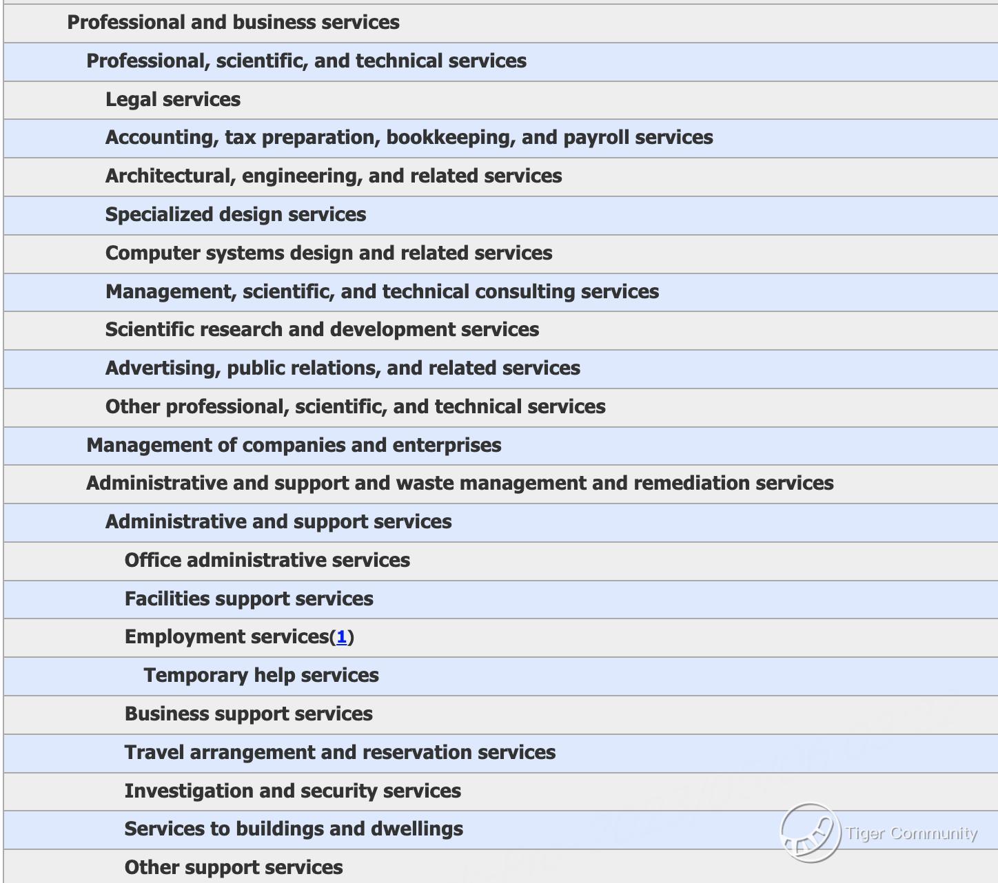 New jobs were created not only in health care and services, but also in professional and business services. The scope of professional and business services is as follows: