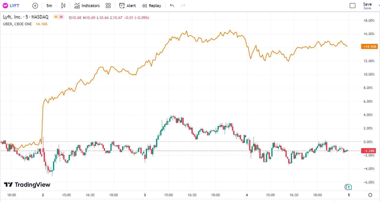 4. $Lyft, Inc.(LYFT)$ -17.03% on weak guidance while $Uber(UBER)$ +11.55% on the earnings date
