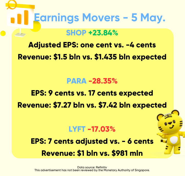 Earnings Movers| SHOP & SHAK + Nearly 20%; PARA, LYFT, PTON Plunged After Missed Estimates