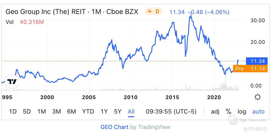 Geo Group Inc came to prominence when it became the only holding bought by Michael Burry (Scion Asset Management) in Q2/2022. Here is a news extract from Reuters: