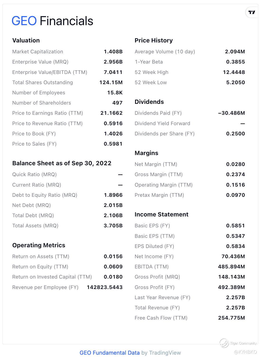 Thus, it became intriguing when one of my most respected investors emptied his portfolio and bought only GEO in Q2/2022. In Q3/2022, he increased his stake by another 302%. This caught my interest as Burry more than doubled down for this business. So, who is GEO?