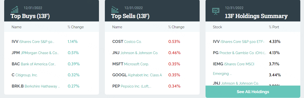 13 Filings refers to the quarterly disclosure of position reports by U.S. institutional investors with more than $100 million in equity assets under management.
