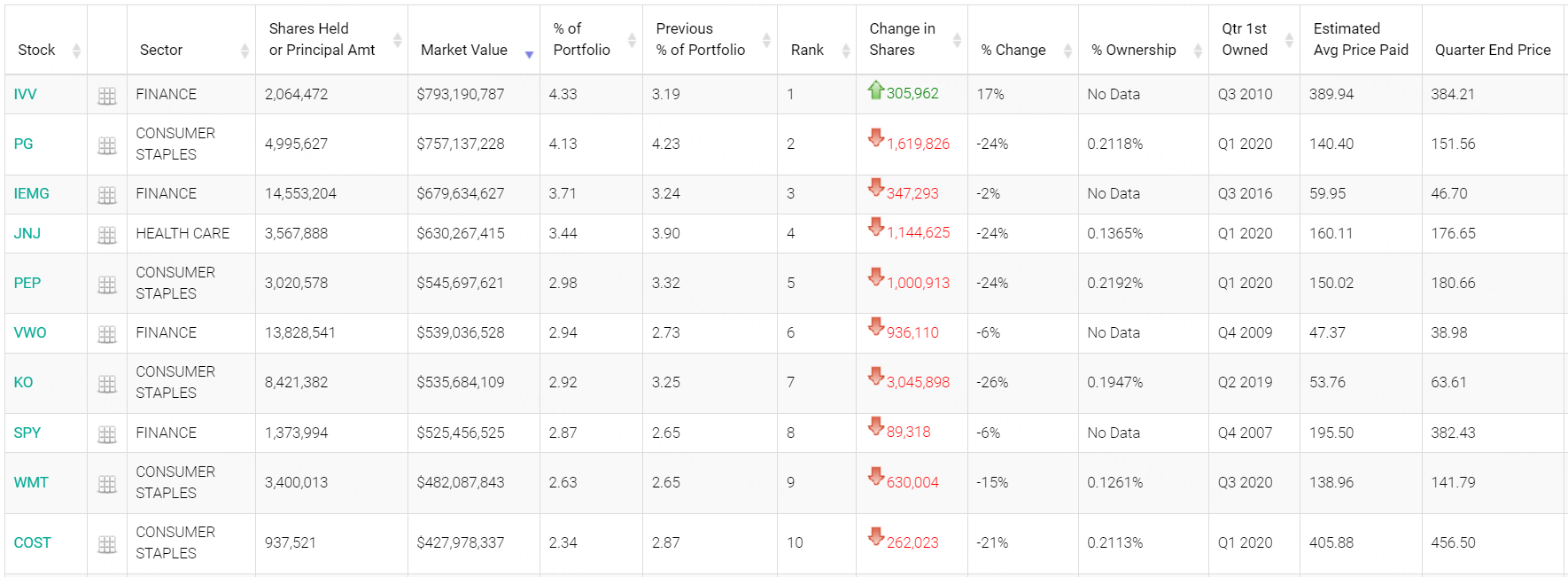- Consumer staples: top liquidations in $Procter & Gamble(PG)$, $Coca-Cola(KO)$, $Pepsi(PEP)$, $McDonald's(MCD)$