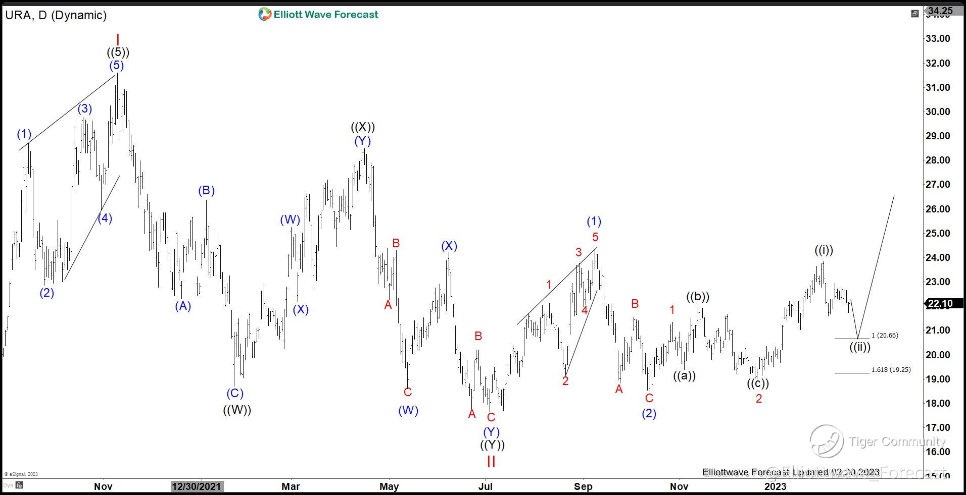 In our previous article, we mentioned that Uranium ETF (ticker URA) has ended correction to the cycle from 2020 low and ready to resume higher. In this article, we will update the outlook for the ETF. We see the commodity complex forming a high on early February 2023 and pulling back. We see further pullback in $URA in near term before it is ready to resume higher again.