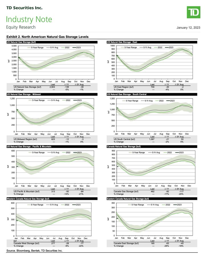 3.North American Natural Gas Storage Levels for the week ending Jan 6/23