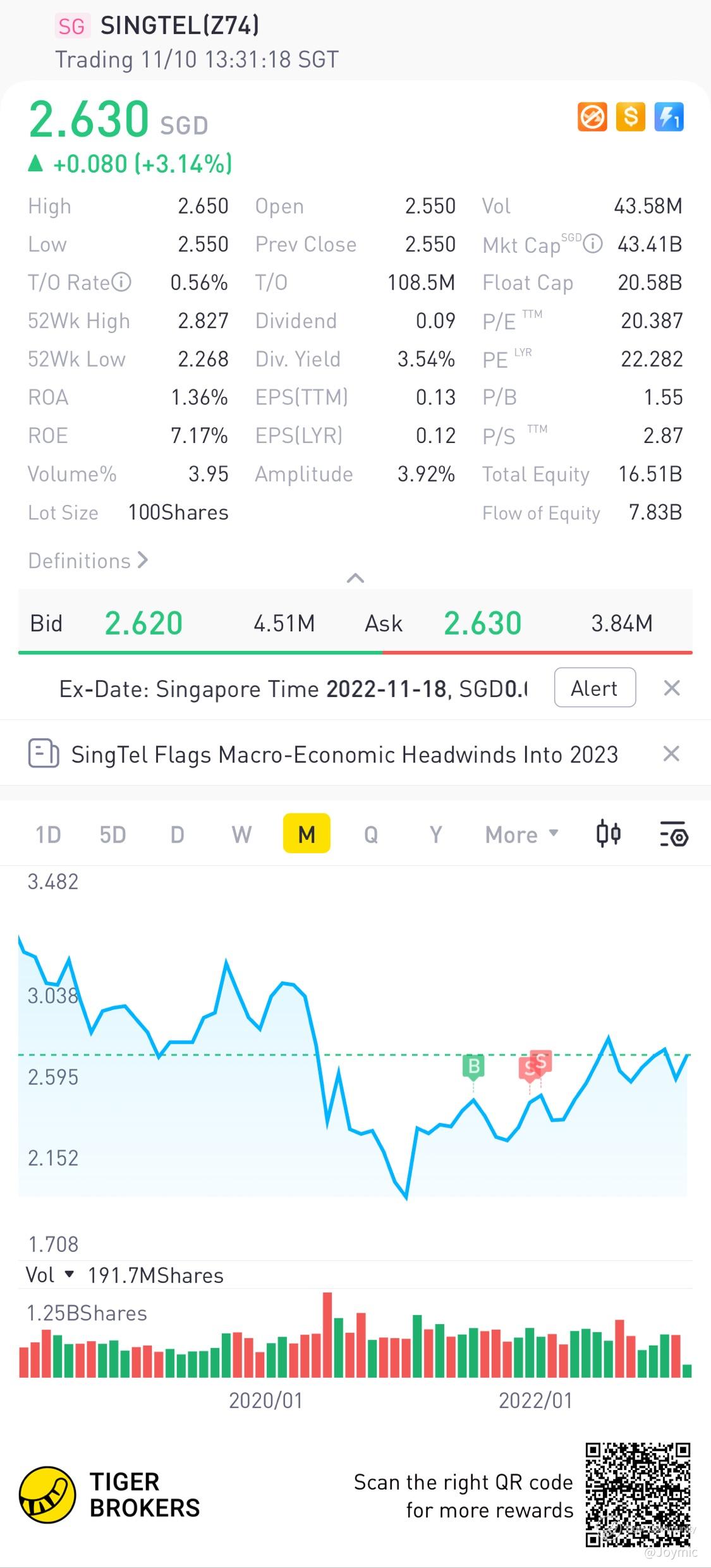 $SINGTEL(Z74.SI)$ Good dividend 😀