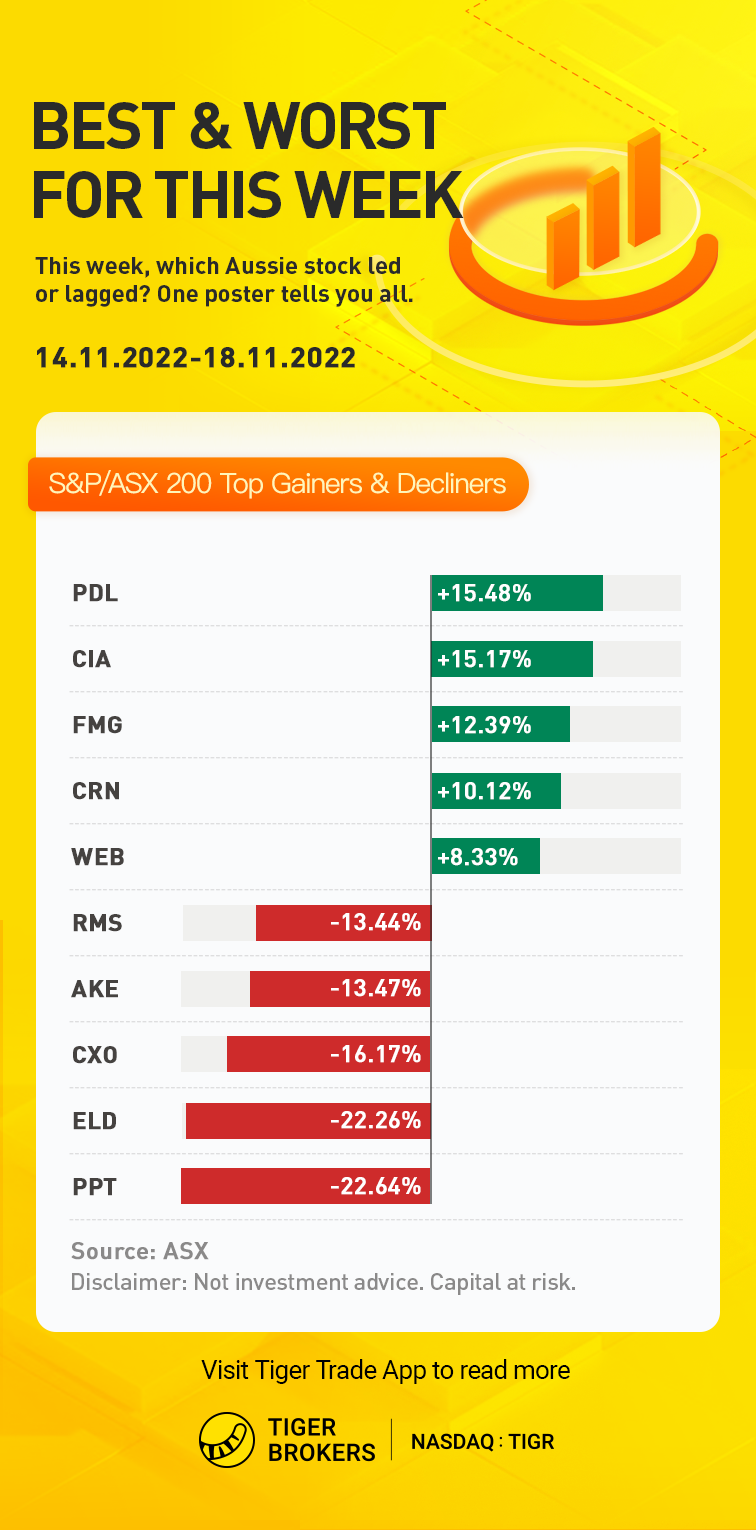 During the last 5 trading days, $Pendal(PDL.AU)$ $Champion Iron Ltd(CIA.AU)$ $FORTESCUE METALS GROUP LTD(FMG.AU)$ $Coronado Global(CRN.AU)$ $Webjet(WEB.AU)$ are the top 5 Weekly gainers, up 15.48%, 15.17%, 12.39%, 10.12%, and 8.33% respectively.