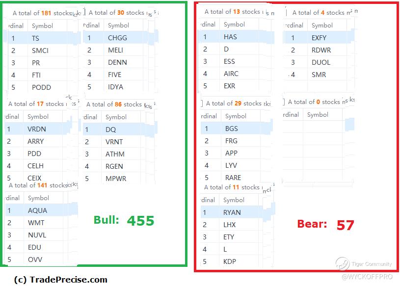 The bullish setup vs. the bearish setup is 455 to 57 from the screenshot of my stock screener below.