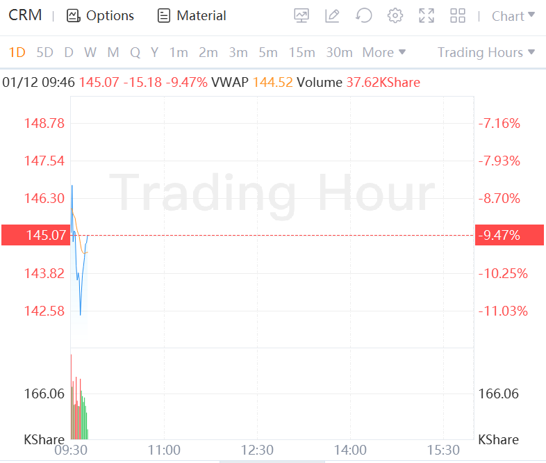 $Salesforce(CRM)$ shares fell over 9% in morning trading as the cloud-based business software company said co-Chief Executive Bret Taylor will leave the company.