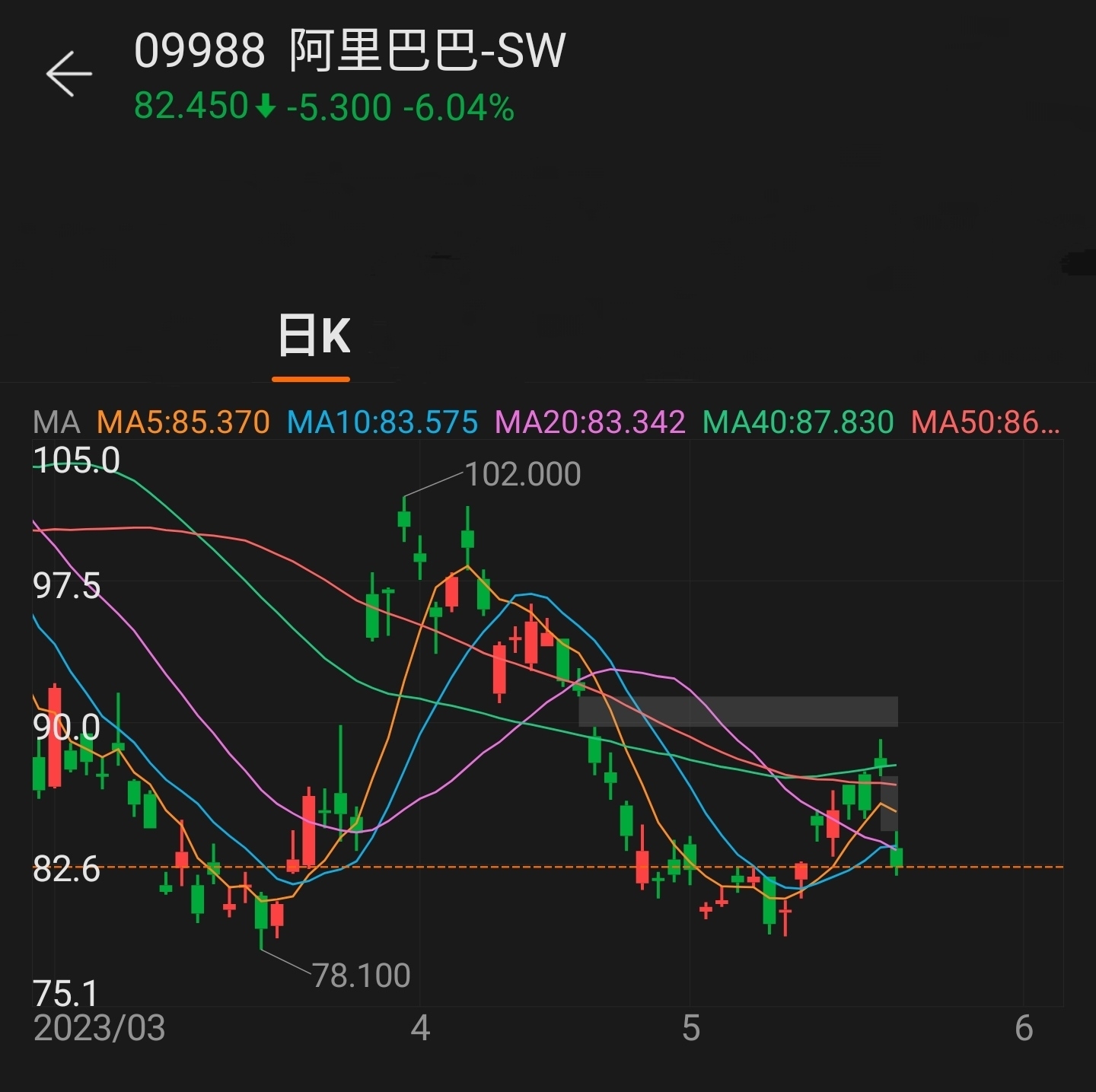 運用技術走勢分析 阿里巴巴-SW (09988.HK)