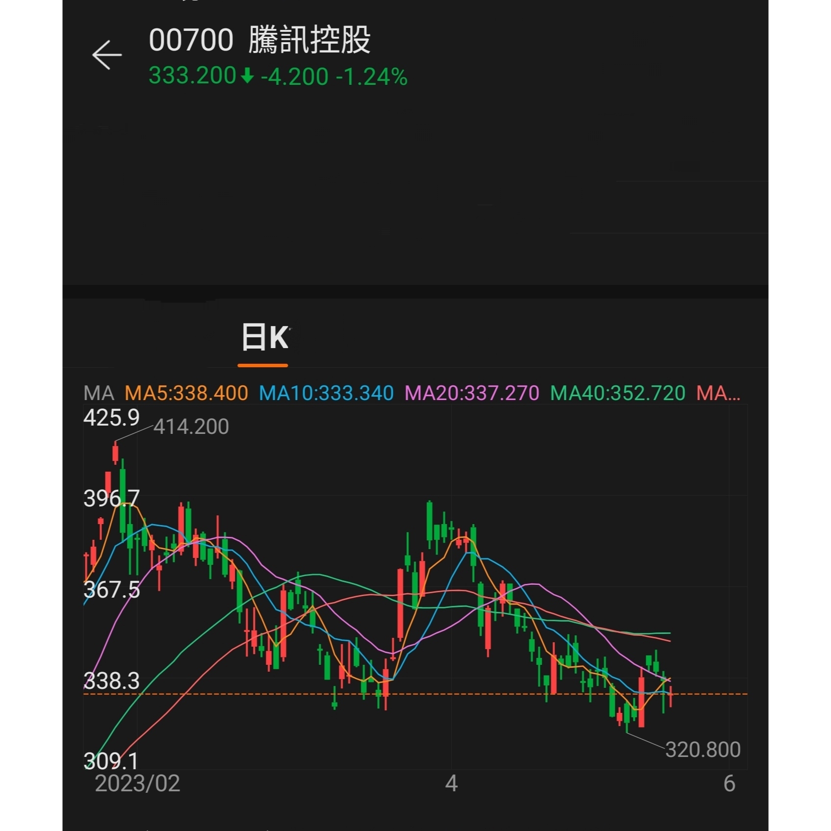 股價跌穿5天及10天移動平均日線,5天移動平均日線(約339元)變為阻力位,若然股價未能重上5天及20天日線之上,那下一步就要看315元支持位,而再下一個支持位就要看300元水平。