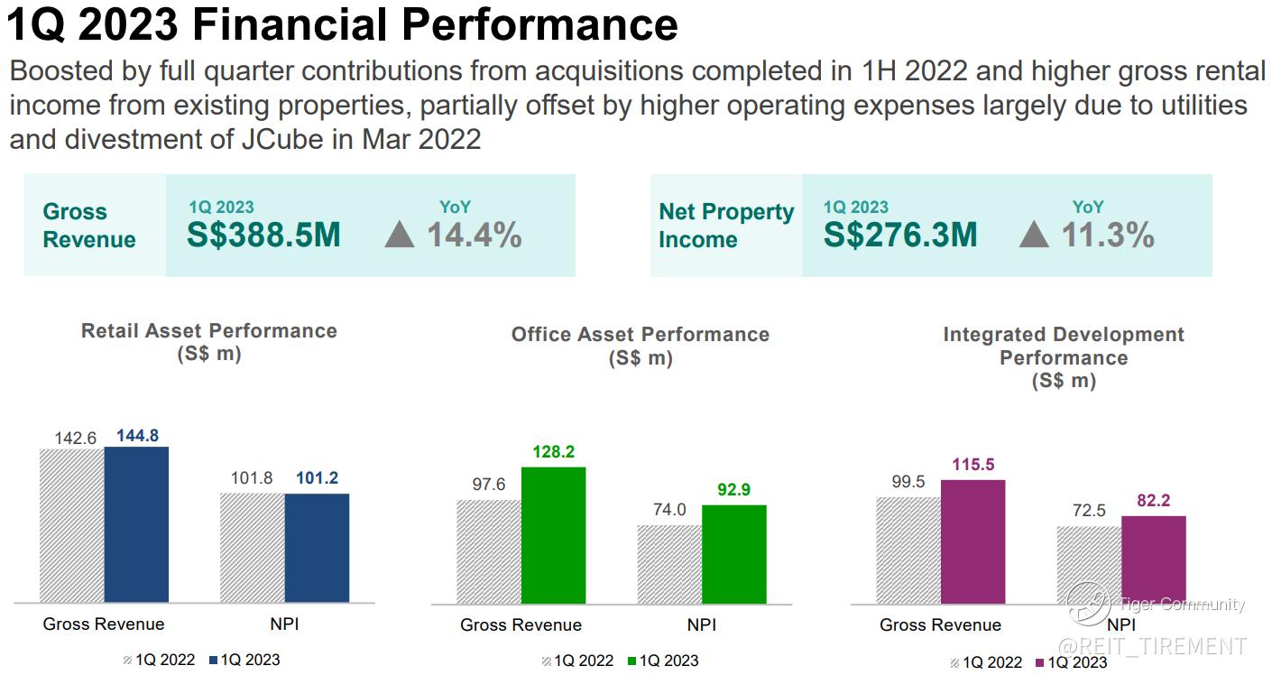 Gross revenue and NPI have improved yoy mainly due to contributions from 66 Goulburn Street, 100 Arthur Street, 101-103 Miller Street, Greenwood Plaza and CapitaSky which were acquired between March to June 2022.