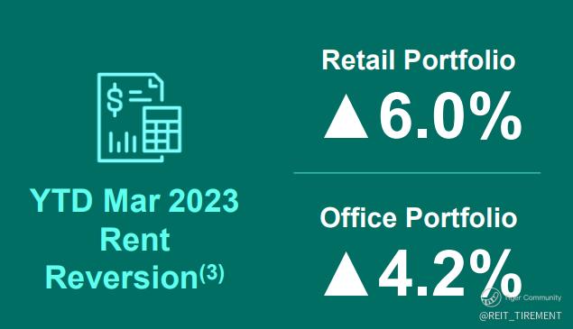 Rental reversion is at +6% for the retail portfolio and +4.2% for the office portfolio.