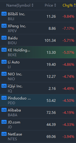 Hot Chinese ADRs crashed in morning trading, with $Bilibili Inc.(BILI)$ slumping nearly 10% and $XPeng Inc.(XPEV)$ slumping over 7%.