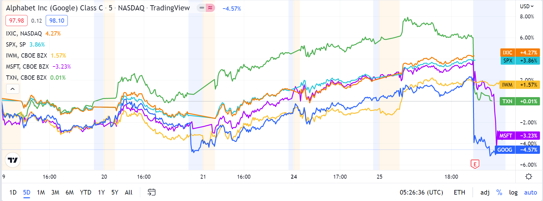 1. Technology Giants $Alphabet(GOOG)$ , $Microsoft(MSFT)$ , and $Texas Instruments(TXN)$ fell sharply at after-hours with miss Q3 earnings: